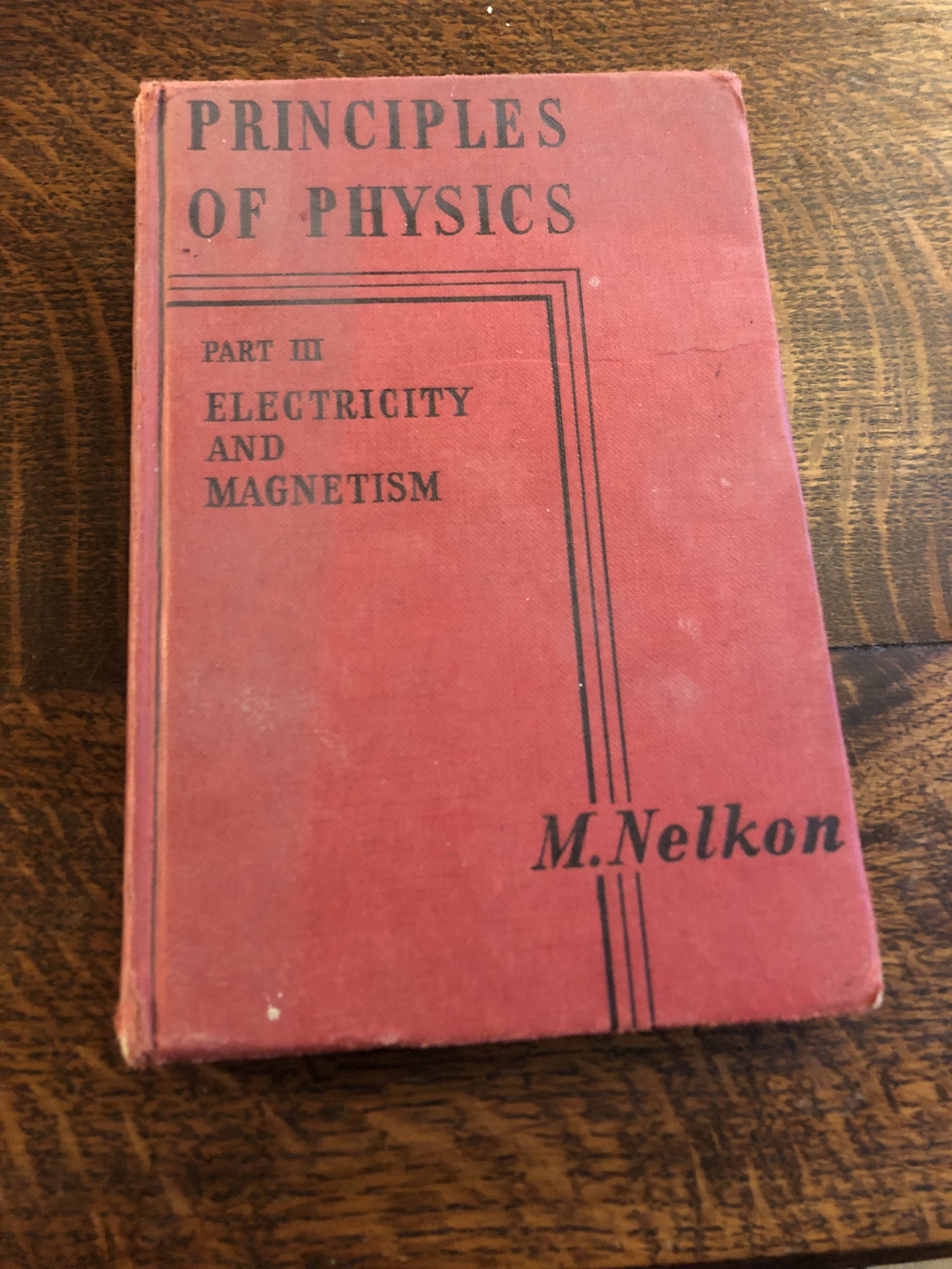 Principles of Physics Part III. Electricity And Magnetism. By M Nelkon and published by Chatto & Windus in 1965. The book is in reasonably good condition with some inscriptions on the first inner pages and some marks on the back cover. Carriage is available, quote on request.